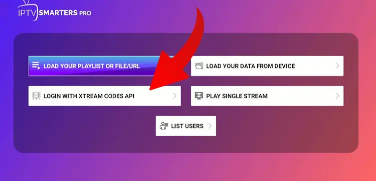 Step 13: Click the “LOGIN WITH XTREAM CODES API"
