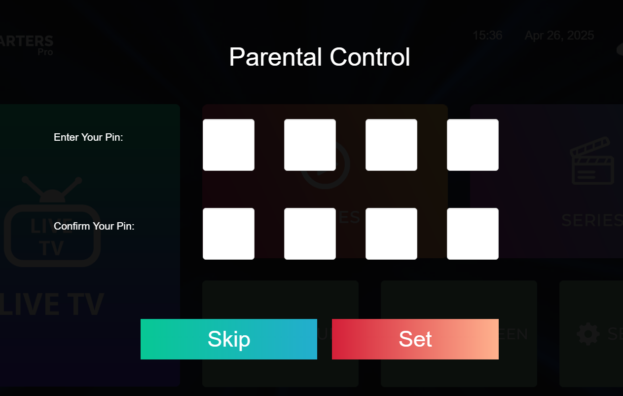 Step 6: You can Skip this or Add your own PIN (Optional) and it will be ready to use IPTV.